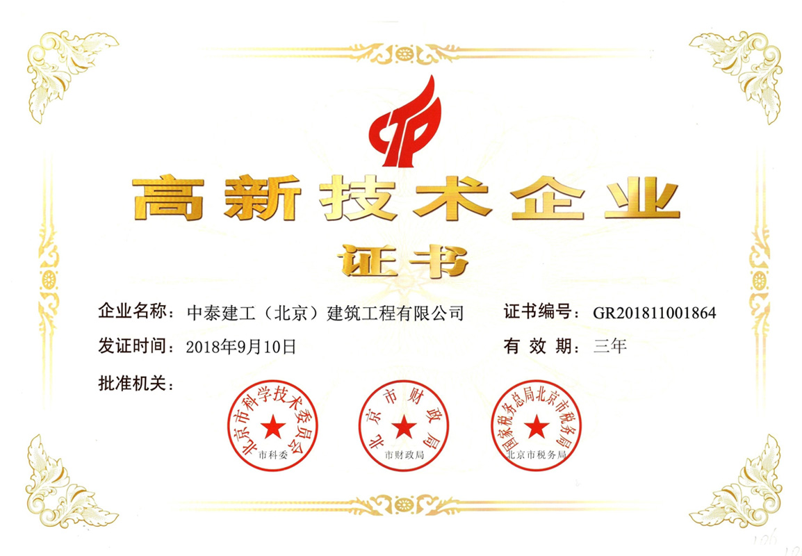 中泰建工子公司:居佳祥和榮譽資質