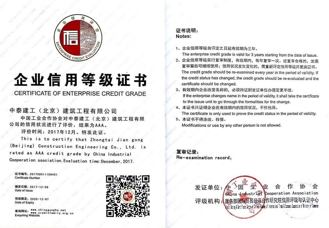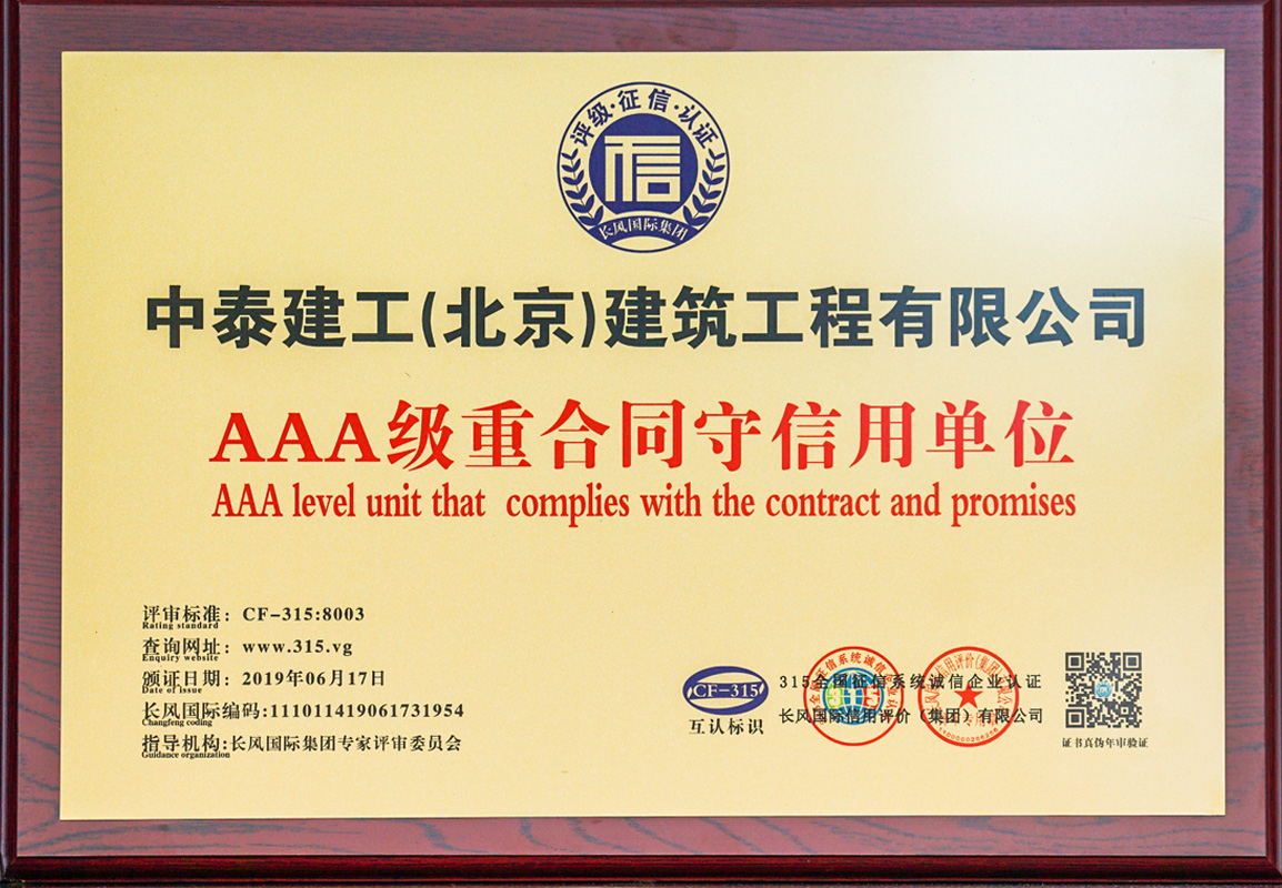 2015 年 9 月公司順利通過 IS9001 國家質量標準認證;2017年12月被評為AAA企業并頒發企業信用等級證書;2018年1月30日被評為中關村高新技術企業。擁有各類大中型工程機械設備及檢測儀器。