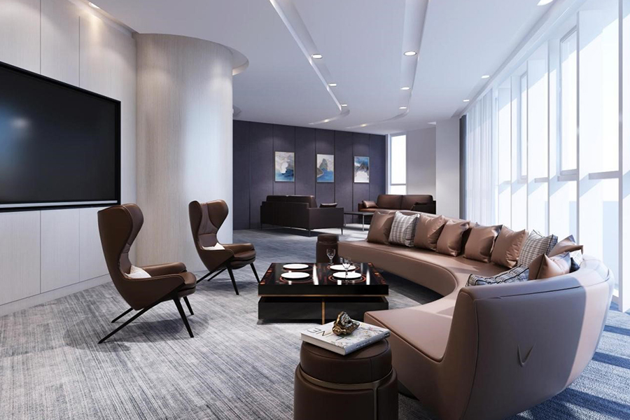 注重空間的開放流動和相對獨立,以意識形態打破空間封閉個體,重組空間關系,室外環境和室內空間無界共生關系。設計表現不要被材質所束縛,石材的肌體組合、木材的溫潤體貼,玻璃的有序無界,既蘊含力量又平靜和諧。作品整體自信而不拘小節,隱喻企業可持續發展的未來和國際化的品質。