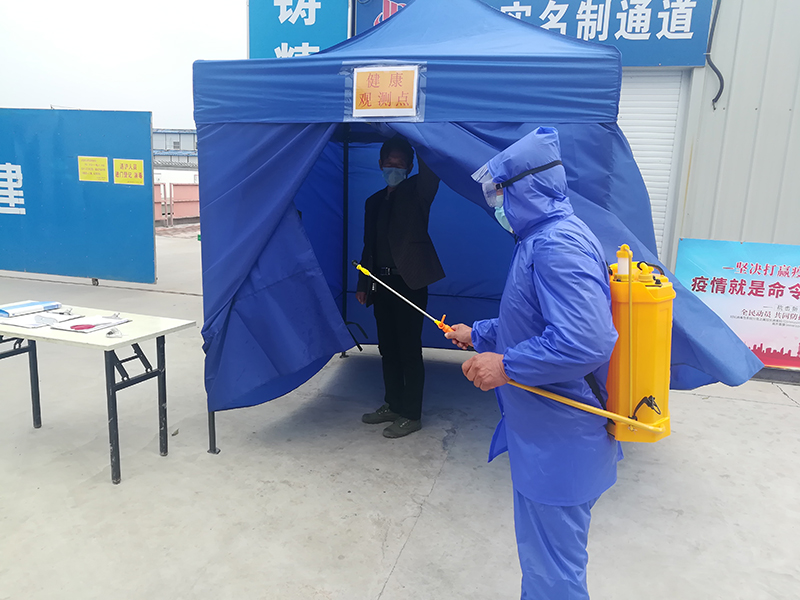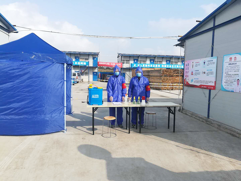防疫消毒棚。現場防疫第一道屏障,所有復工人員及外訪人員都需要在此處接受體溫檢測及消毒,合格后方能登記入場。