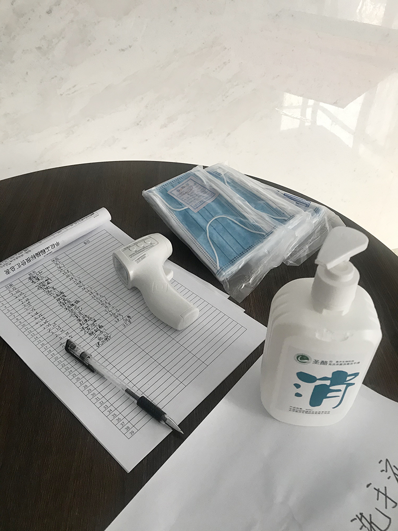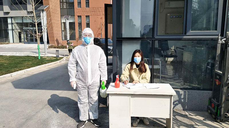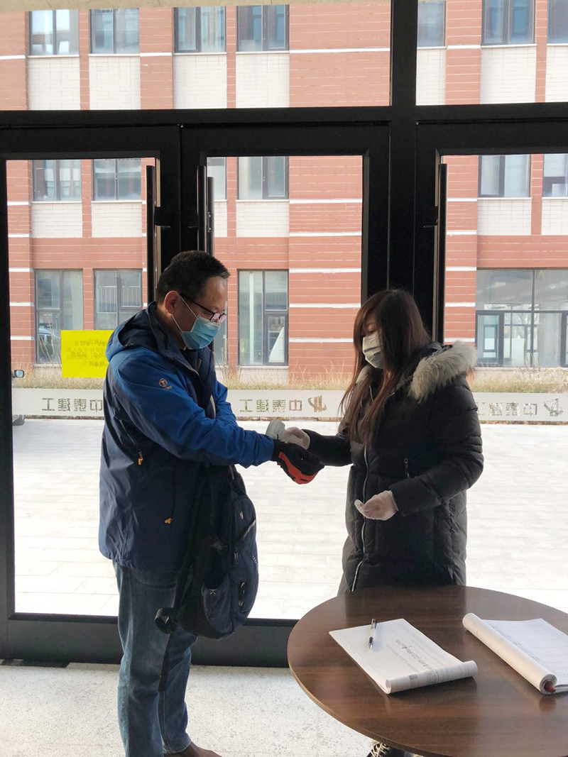 嚴控出入,守好第一關。每一個出入公司的人員,都要做好個人信息登記、全身消毒、體溫測量、佩戴口罩等日常防疫工作。
