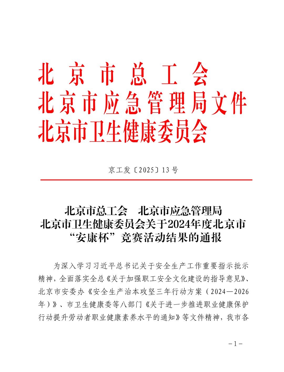 北京市“安康杯”競賽活動由市總工會、市應(yīng)急管理局、市衛(wèi)生健康委員會等部門聯(lián)合開展,為深入學(xué)習(xí)習(xí)近平總書記關(guān)于安全生產(chǎn)工作的重要指示批示精神,全面落實相關(guān)安全生產(chǎn)和職業(yè)健康等政策文件,通過競賽形式推動企業(yè)安全生產(chǎn)和工會勞動保護工作創(chuàng)新發(fā)展,提升職工安全健康意識和自我保護能力,維護職工的安全健康權(quán)益,為安全生產(chǎn)形勢貢獻力量。